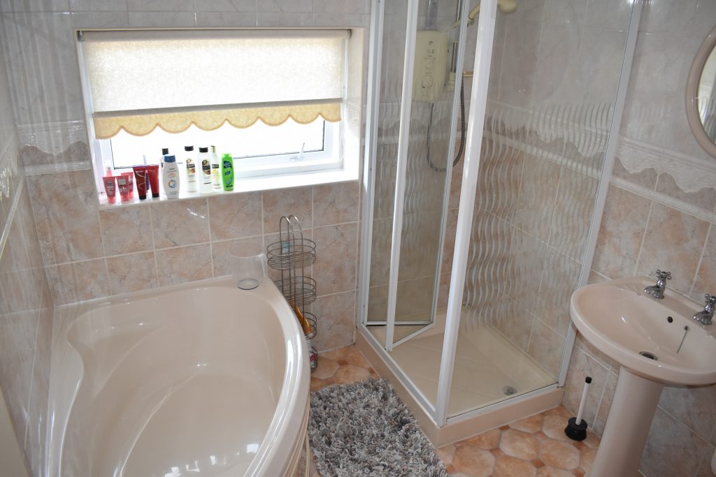 With UPVC double glazed opaque window, corner bath, shower cubicle, wash hand basin and W.C.