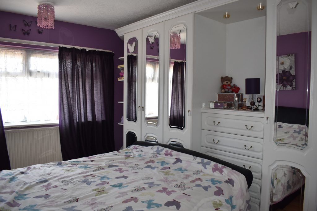 With window to the front, feature fireplace, radiators, ceiling light points, power points and patio doors on to the rear garden.