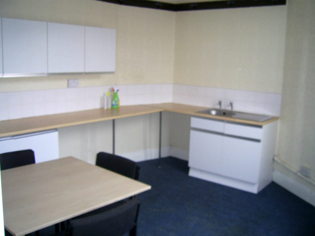 11’ 6” maximum x 13’ With ceiling light point, twin sash windows to the side, a range of wall and base units with roll top work surfaces and tiled surrounds, single drainer stainless steel sink with chrome taps, power points, telephone point and radiator.
